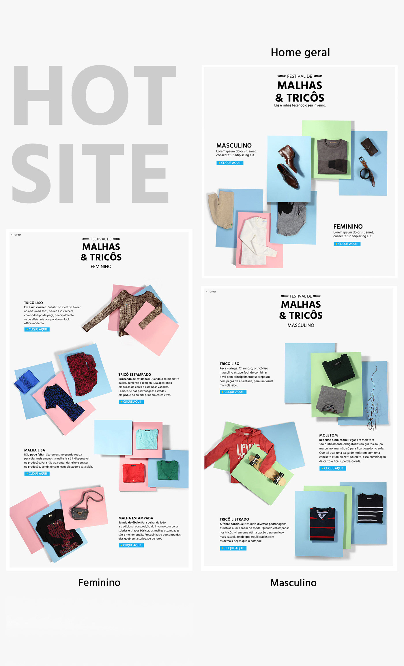 Desenvolvimento do hotsite de malhas e tricôs para a página de moda do submarino.com.